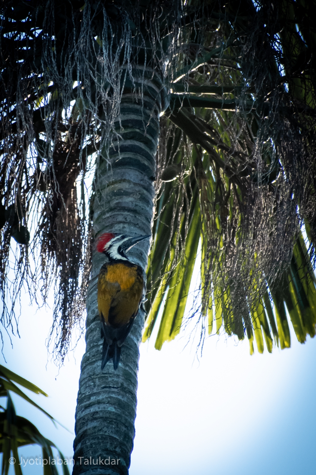 This was a last-minute shot I took in my village. I was about to enter my car to come home. I heard a rattling call. I was searching for this bird the entire day. But never was able to spot it. After hearing the call, it took some time to spot the source, since it concealed itself in a betel nut tree. I took my camera and zoomed to the fullest to spot and capture. The call went on for a few minutes. It flew away after that. I was lucky to witness that