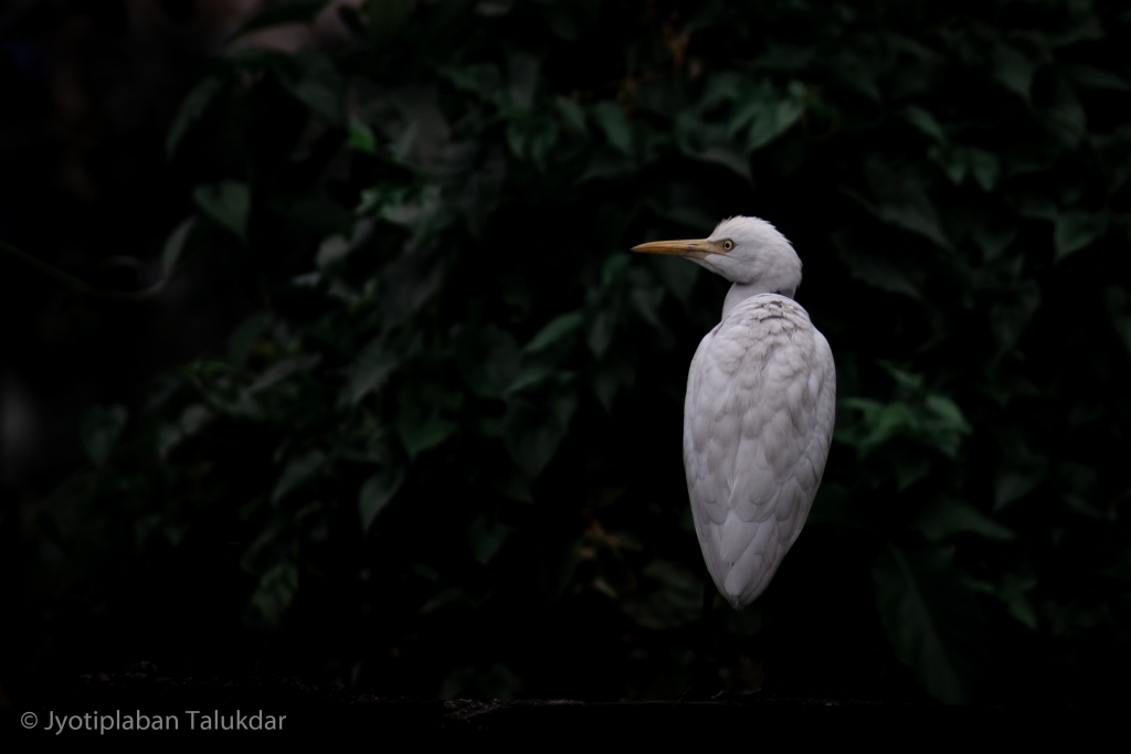 I took this shot near our house. He was first sitting on the back of a cow, picking fleas one by one. The cow seems to be enjoying this. As I went near to photograph them, the bird went to a nearby wall. It continued to monitor my movement. Just after I photographed him, he flew away.